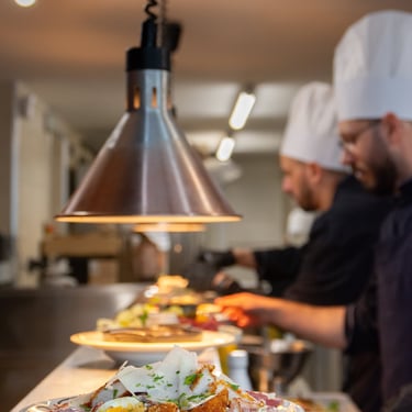 Observez nos chefs cuisiner depuis l'intérieur ou l'extérieur du restaurant.